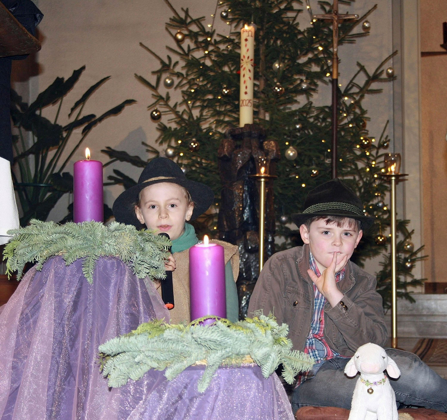Kinder und Jugendliche im Alter von 3 bis 13 hatten schon wochenlang das Krippenspiel eingeübt und freuten sich sehr, dass sie das Stück aufführen konnten.