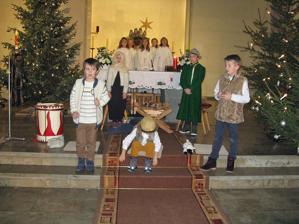 Dieses Krippenspiel wurde auch im Haus am Teichberg in der Seniorenresidenz Phönix am Sonntag, 23. 12. 2018 aufgeführt. Es ist Tradition, dass die Kinder dort die Generalprobe des Krippenspiels haben.