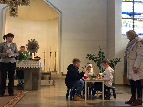 Nach dem Evangelium zeigten die Kinder mit Monika Kreitsch in einem Sprechspiel, dass das Salz der Suppe erst Geschmack gibt.